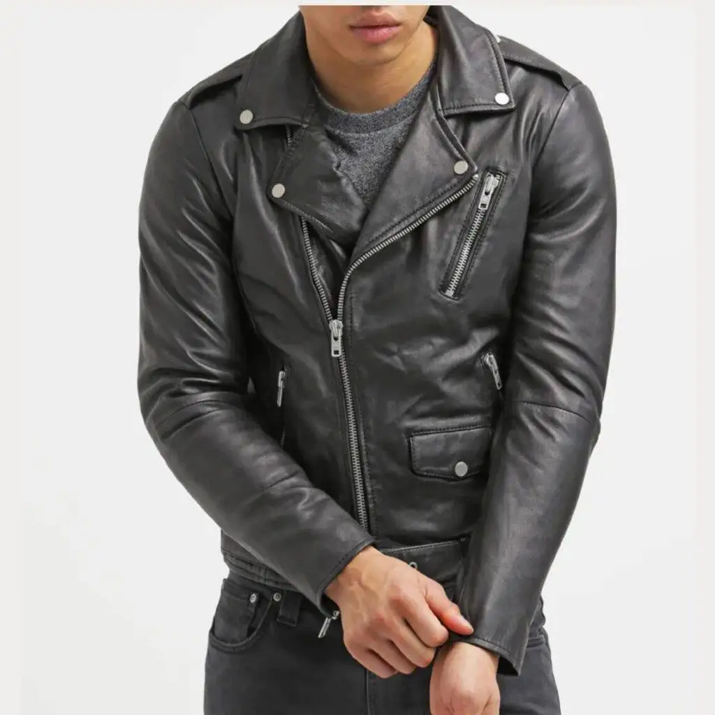 Redéfinissez l’élégance robuste avec notre veste de moto en cuir noire avec ceinture pour hommes. Fabriquée de main de maître