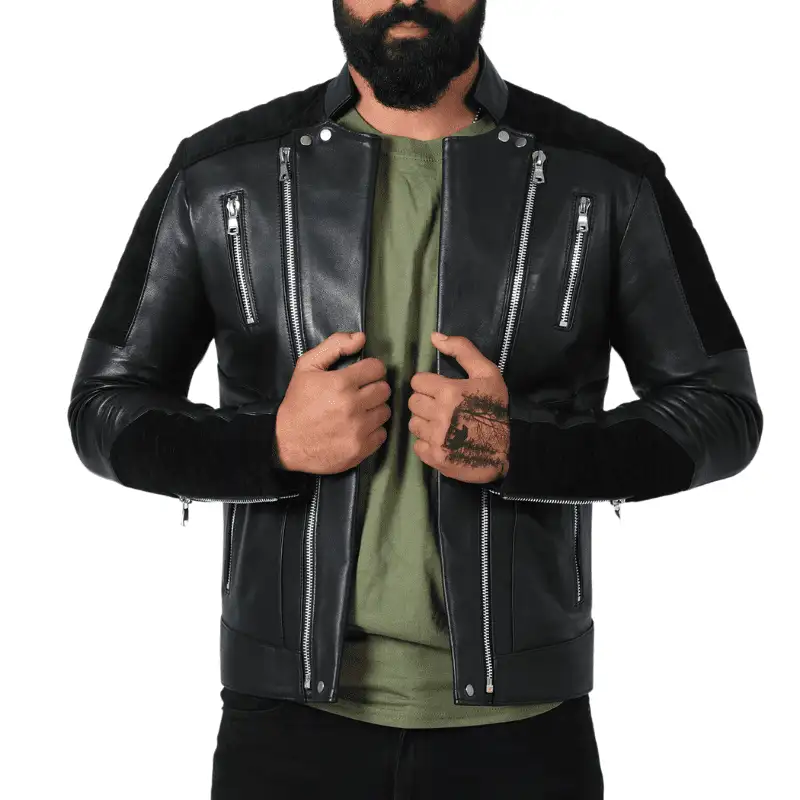 Blouson en cuir véritable et daim