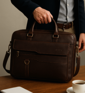 Choisissez notre cartable pour combiner style, protection et organisation dans tous vos déplacements professionnels. Disponible en marron clair, marron foncé et noir, elle est l’accessoire incontournable pour les hommes modernes.