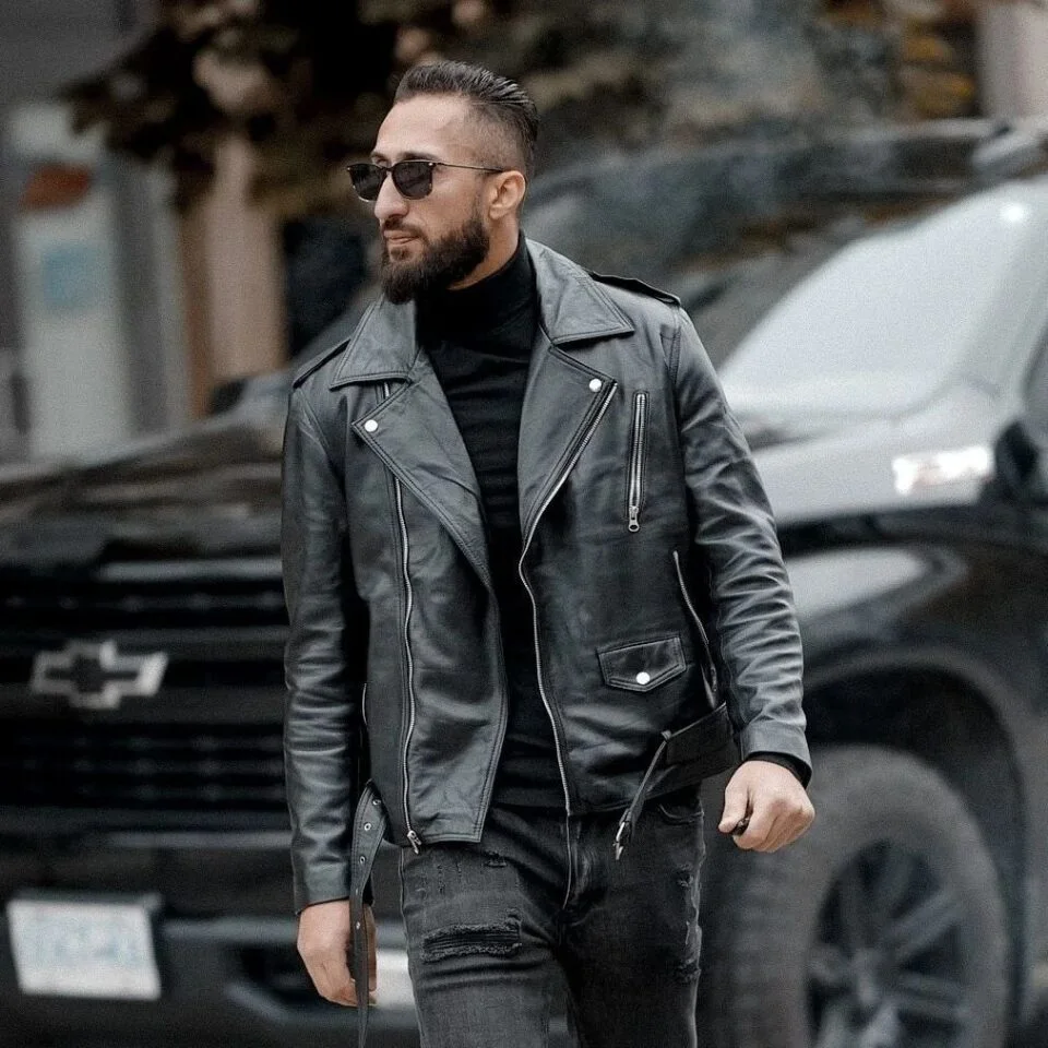 Redéfinissez l’élégance robuste avec notre veste de moto en cuir noire avec ceinture pour hommes. Fabriquée de main de maître à partir du cuir véritable le plus fin, cette veste incarne l’esprit de la route avec ses éléments de design moto classiques. L’ajout d’une ceinture distinctive ajoute à la fois de la fonctionnalité et une touche de style unique. Parfait pour l’homme moderne qui recherche à parts égales l’aventure et la classe.